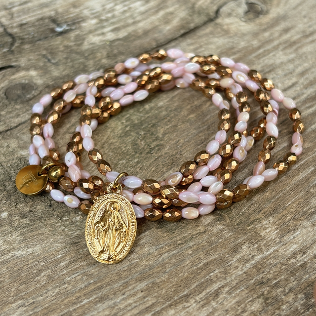 Bracelet 6 tours et Collier Médaille Miraculeuse - Nacre rose