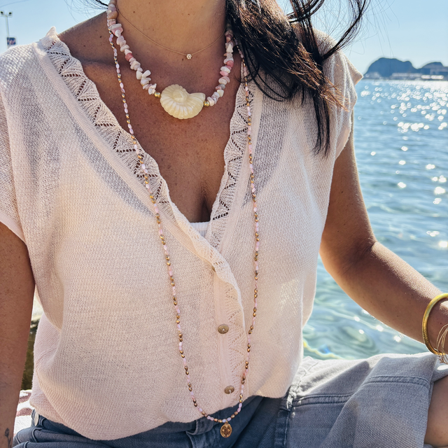 Un bijou deux-en-un à porter en collier ou en bracelet 6 tours.